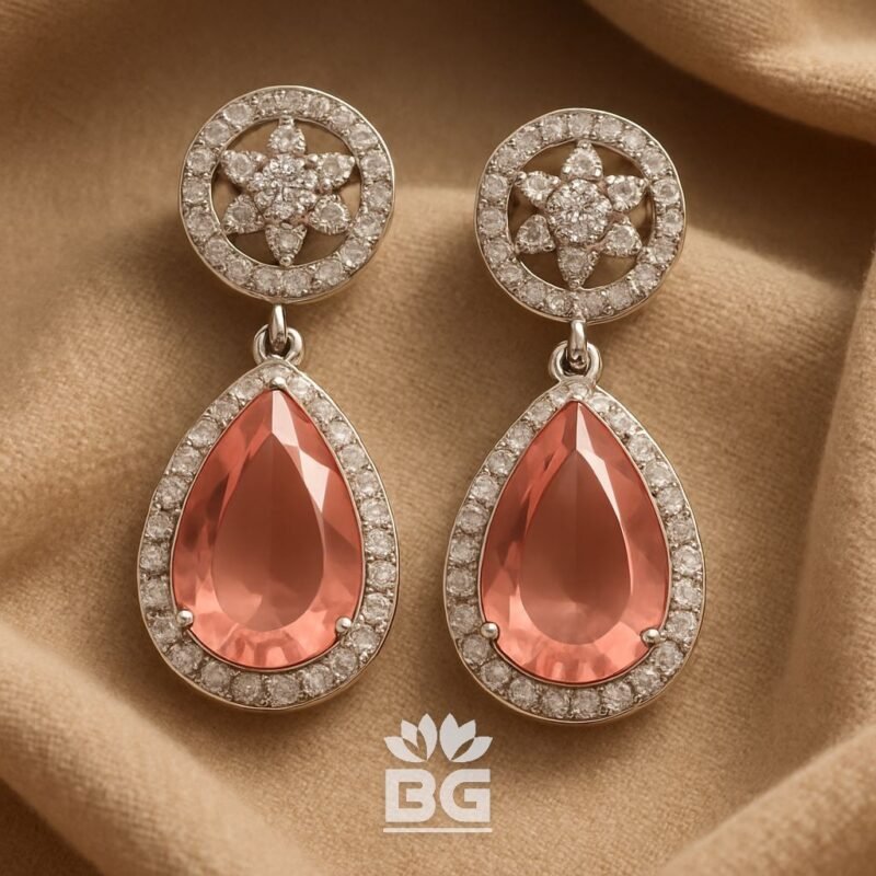92.5 STERLING SILVER PINK STUD EARRINGS