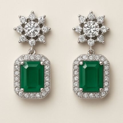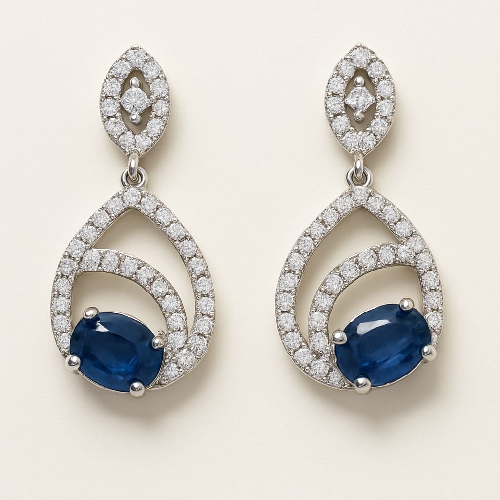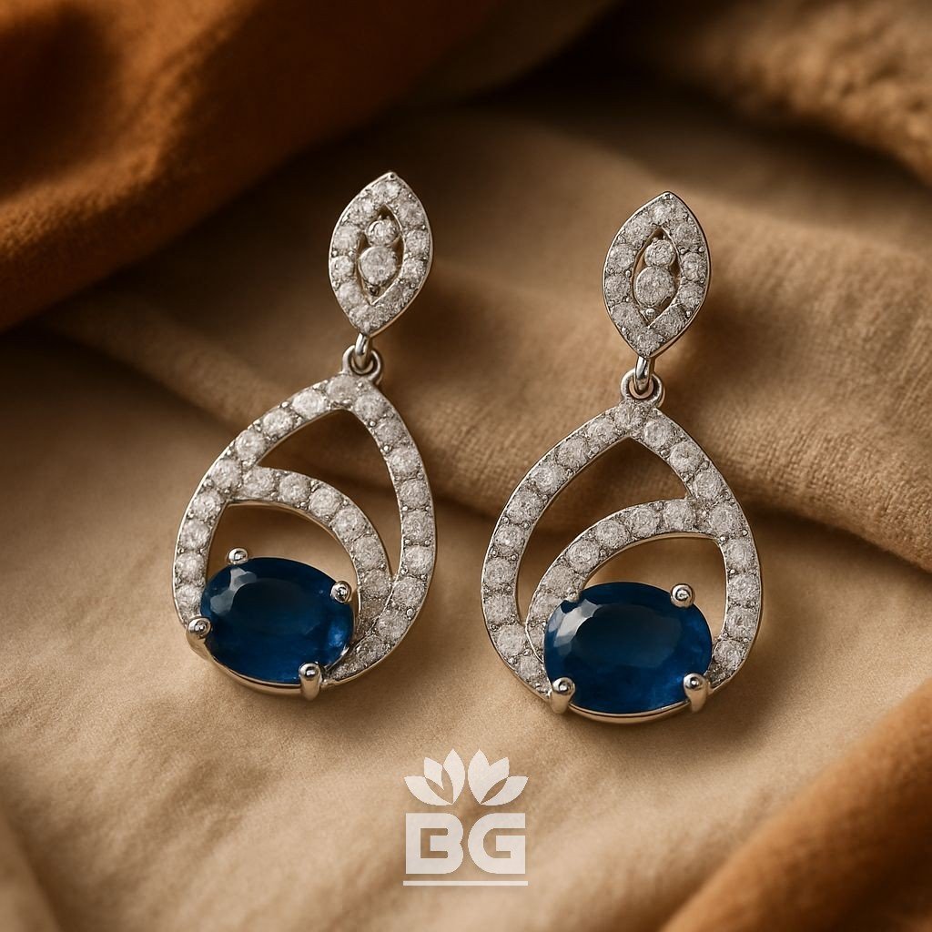 Add a bold touch of elegance to your look with these 92.5 sterling silver earrings. Featuring sparkling CZ stones and vibrant blue gemstone drops, their intricate layered design is perfect for both festive and formal occasions. A stunning fusion of classic sophistication and modern charm that enhances every outfit beautifully.