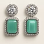 Crafted in 92.5 sterling silver, these exquisite earrings showcase radiant emerald-green stones framed by sparkling cubic zirconia. The brilliant round tops add a luxurious touch, making them perfect for both festive and formal occasions. Elevate your elegance with this timeless design that blends vintage charm with modern sophistication.