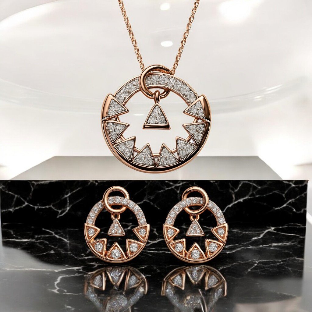 Make a statement with this 925 sterling silver rose gold pendant set, featuring a unique floral and geometric design with sparkling stones. The elegant blend of rose gold and silver ensures timeless appeal, while the hypoallergenic finish offers comfort for daily or festive wear. Perfect for gifting or elevating your own collection! ✨