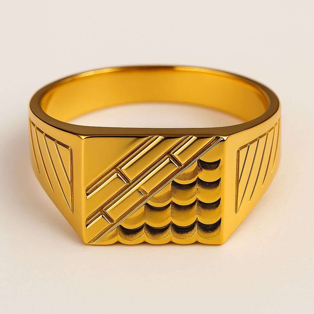 Strong lines, soft shine — the essence of this gents ring from Bannarasi Gehnaa.
