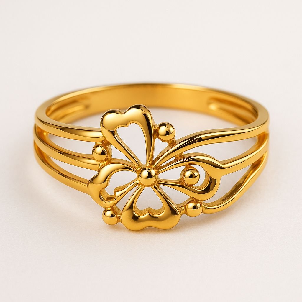 With its sleek shape and high-polish shine, this gold ladies ring speaks of simple luxury. Lightweight and versatile, it adapts to your everyday lifestyle while adding a golden glow.
