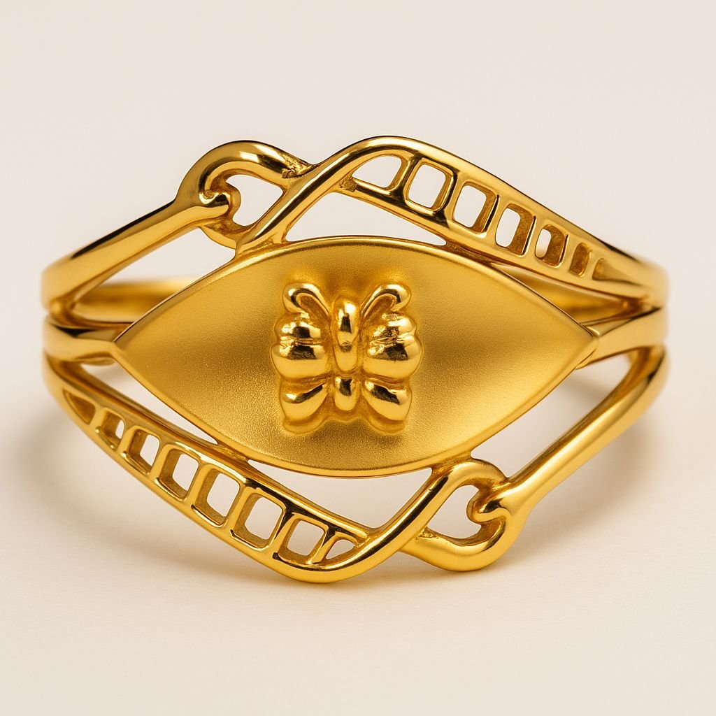This gold ladies ring is simplicity at its best. The lustrous finish and sleek contour blend perfectly with every style. A perfect pick for the modern woman who values understated beauty.